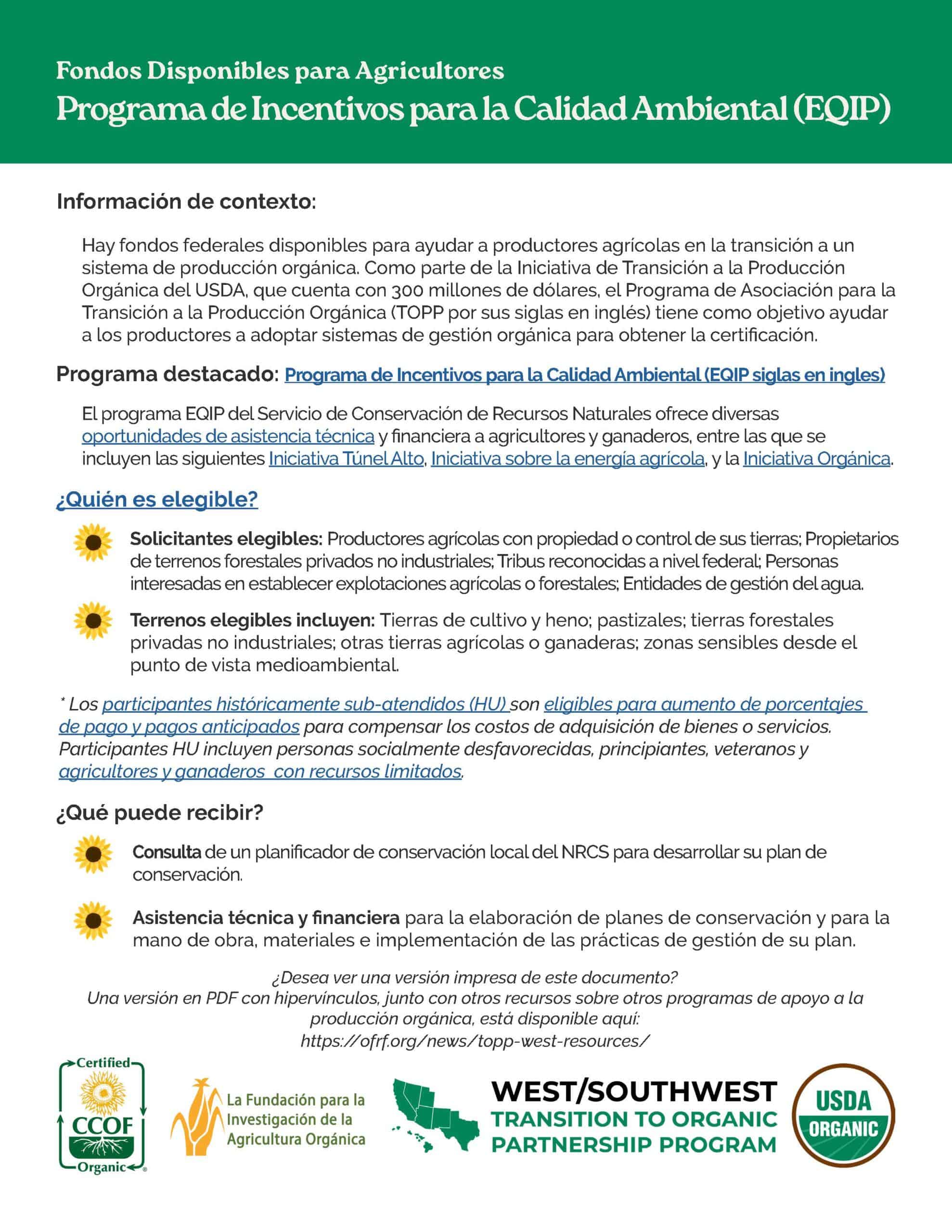 Una guía del NRCS para la Programa de incentivos para la calidad ambiental.